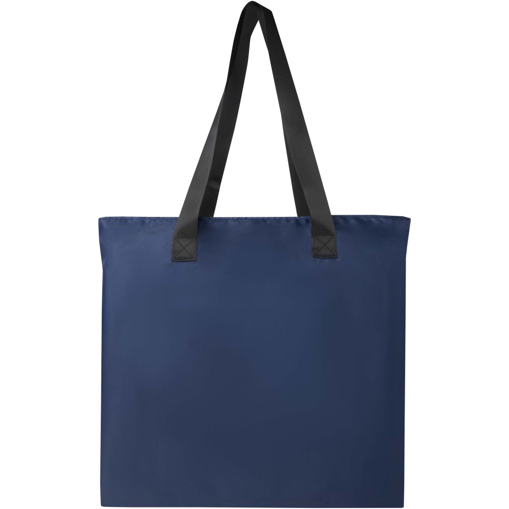 Ez a könnyű, mégis tartós bevásárlótáska a kényelem és praktikusság jegyében készült. Könnyedén a kompakt tasakba hajtható, amelyen hurok található a kényelmes hordozás érdekében - tökéletes rohanós napokra, spontán bevásárlásokhoz vagy tartalék táskaként. Tágas cipzáras főrekesszel, cipzáras elülső zsebbel és két hosszú, sima szövött anyagból készült fogantyúval rendelkezik. PVC-mentes újrahasznosított poliészterből készült. Űrtartalma: 16 liter.