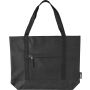 600D rPET poliészter bevásárlótáska. Mindkét oldalon PU bevonat teszi vízlepergetővé. Első cipzáras zsebbel, kicsi, belső cipzáras zsebbel és hosszú hordozófüllel. Kapacitása 10 liter. Oldalán rPET címkével.