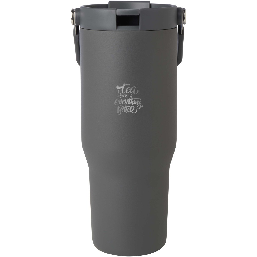 A Bronx 900 ml-es termoszbögre RCS tanúsítvánnyal rendelkező rozsdamentes acélból, dupla falú vákuumszigeteléssel és réz bevonattal készült. A tető kétfunkciós kialakítással rendelkezik: összecsukható ivószárral a kényelmes kortyoláshoz, valamint felpattintható nyílással és lehajtható fogantyúval az egyszerű hordozhatóság érdekében. A legtöbb autós pohártartóba illeszkedik. Újrahasznosított kartondobozban szállítjuk.