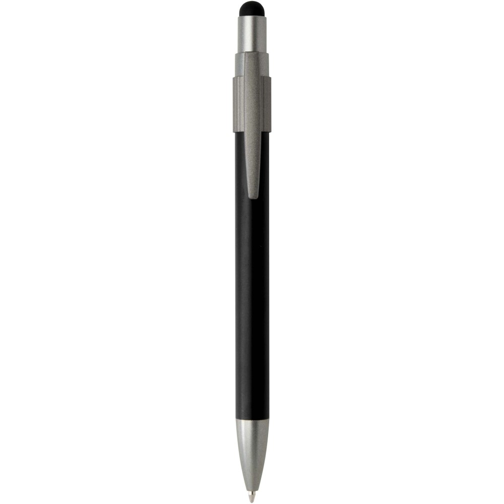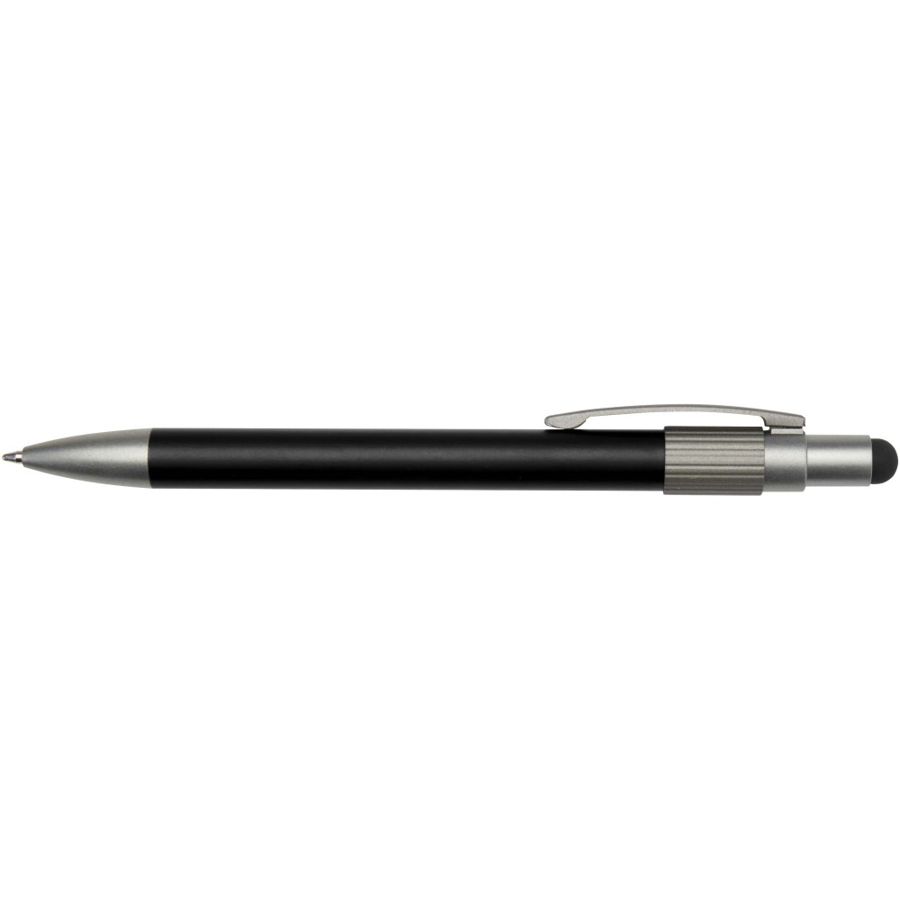 Golyóstoll érintővéggel és fidget spinnerrel, amely a praktikumot játékos dizájnnal ötvözi. A toll RCS tanúsítvánnyal rendelkező újrahasznosított alumíniumból készült, sima működésű nyomógombos szerkezettel és az érintőképernyőkhöz használható érintővéggel rendelkezik. A toll tetején a fidget spinner kiváló stresszoldó. Fekete tollbetéttel, íráshossza 1000 méter.