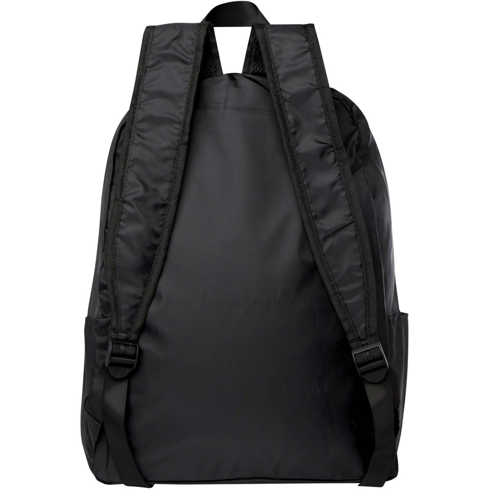 Ez a könnyű, mégis strapabíró hátizsák a kényelem és praktikusság jegyében készült, és könnyedén egy kompakt tasakba hajtható, amelyen szövettáska hurok található a kényelmes hordozás érdekében - ideális utazók, túrázók és a mindennapi használat számára. Cipzáras főrekesszel, cipzáras elülső zsebbel, két oldalsó zsebbel és állítható vállpántokkal rendelkezik. PVC-mentes újrahasznosított poliészterből készült. Űrtartalma: 15 liter.