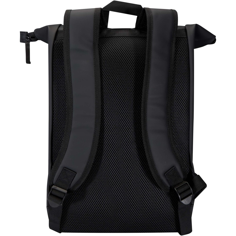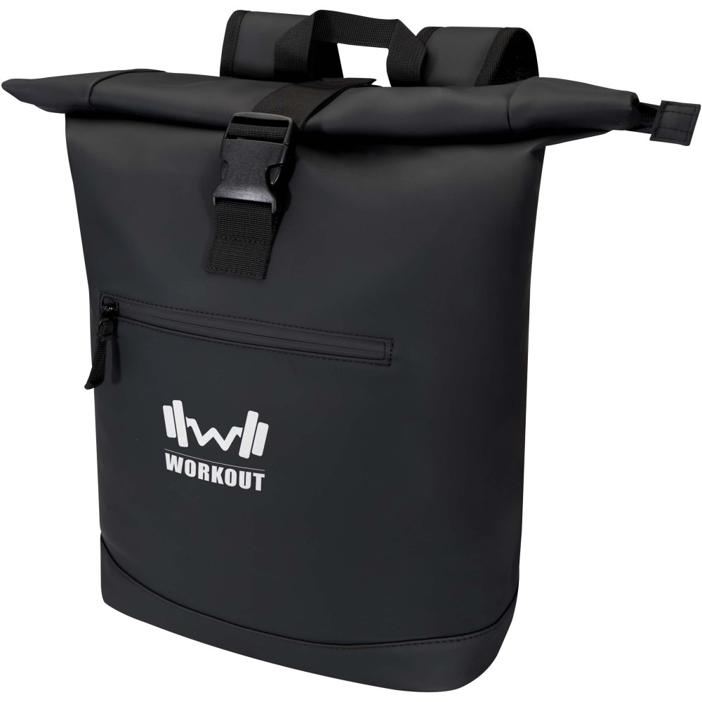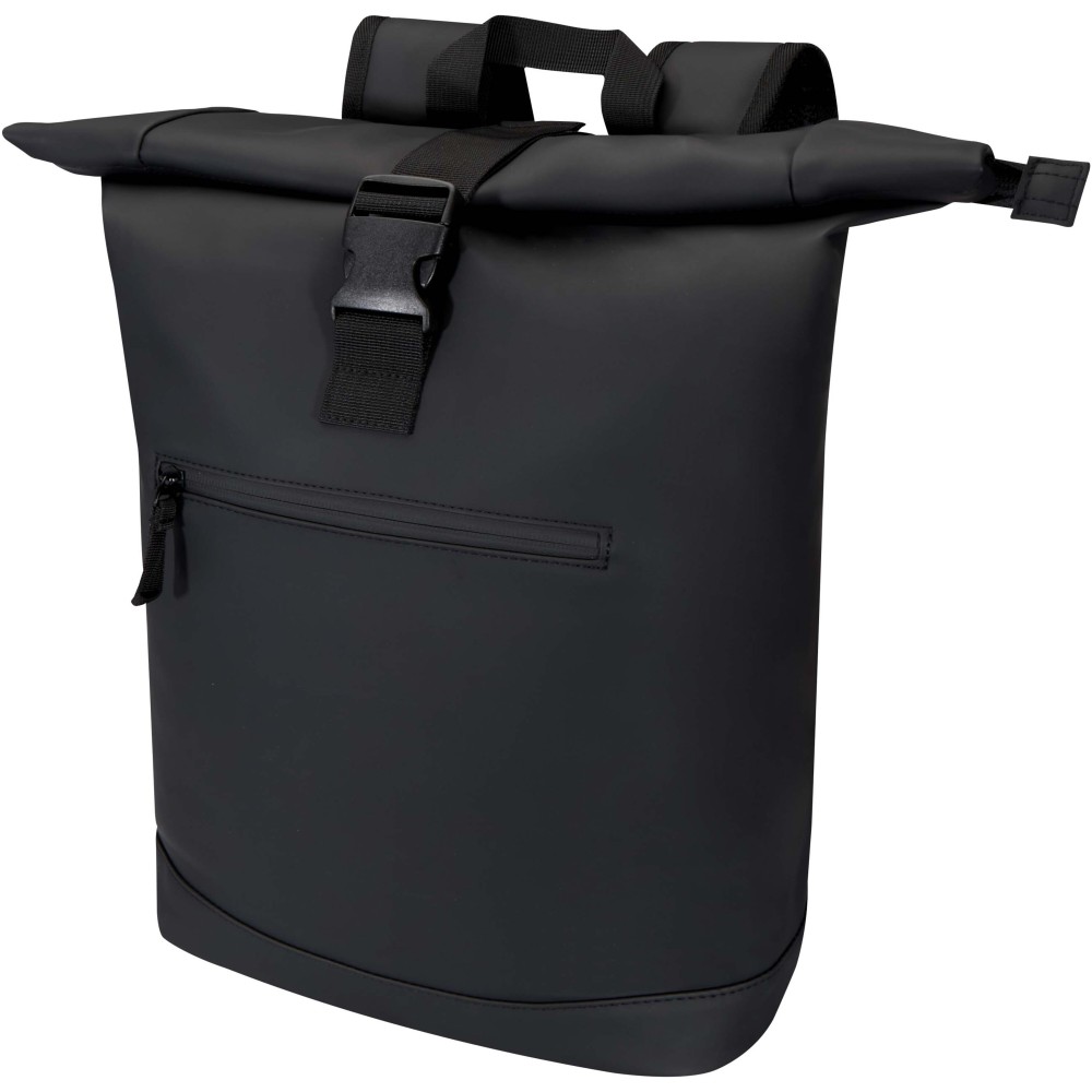 Prémium, újrahasznosított PU bőrből készült, színben harmonizáló RPET béléssel, ez a rolltop hátizsák modern megjelenést és hosszú élettartamot kínál. Vízlepergető felülete megóvja a tartalmát esőtől és nedvességtől, míg a feltekerhető zárórész rugalmas pakolást tesz lehetővé - ideális laptop hátizsákként ingázáshoz, utazáshoz vagy edzőterembe. Belsejében párnázott rekesz található, amely akár 15,6" laptopot is biztonságosan tárol, valamint egy cipzáras zseb a technikai eszközök és mindennapi kellékek rendszerezésére. A külső részen vízálló cipzárral ellátott elülső zseb biztosít gyors és biztonságos hozzáférést, míg a párnázott, állítható vállpántok és a légáteresztő hátpanel egész napos kényelmet nyújtanak.