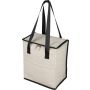 Újrahasznosított PU anyagból készült hűtőtáska 9 literes űrtartalommal, 210D újrahasznosított poliészter béléssel. 2,5 × 66 cm méretű hosszú fülekkel és elülső tárolózsebbel rendelkezik. A belső címkén újrahasznosított alapanyagra utaló logó található.