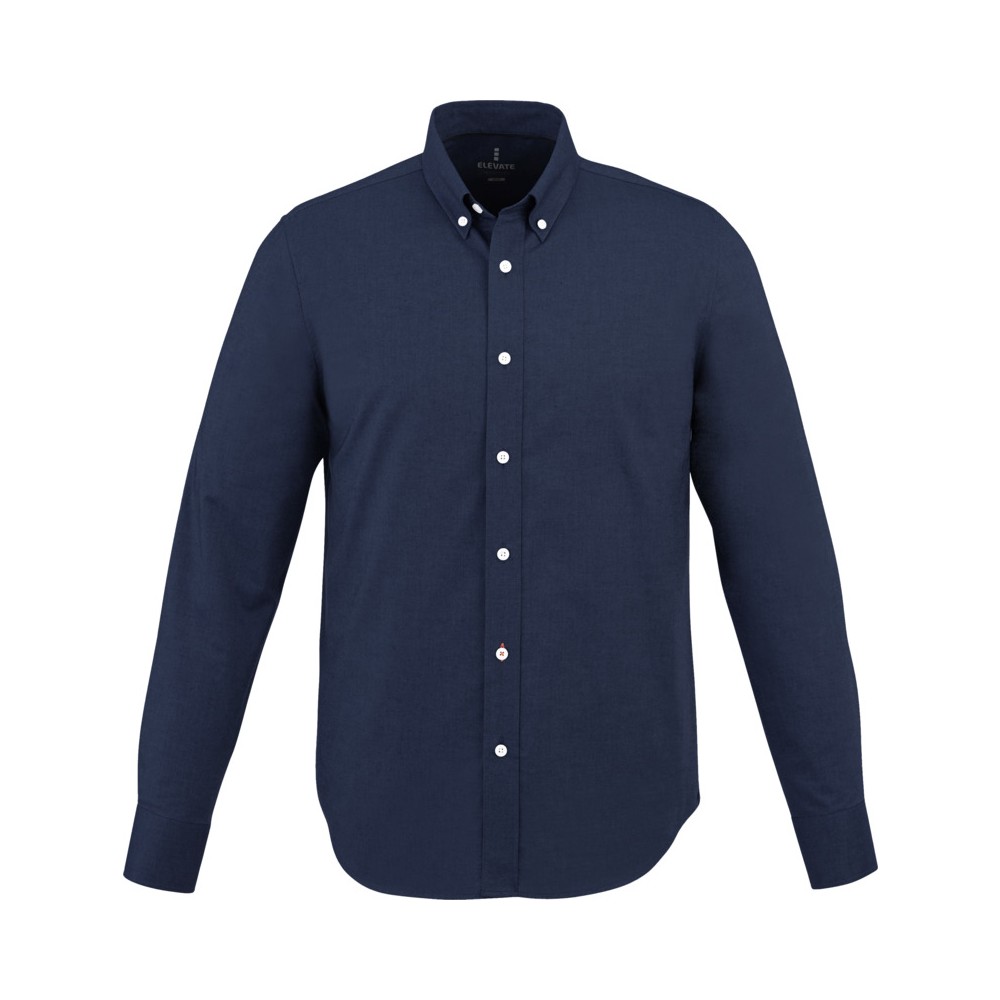 Normál szabásvonal. Elevate logóval gravírozott, fehér gombok. Alulról a második gomblyuk narancssárga öltésekkel dekorálva. Két gombos, állítható kézelő gombolás. Tónusos logónyomat hátul. Szatén szegély a nyakvonalban. Legombolható gallér (férfi). 100% pamut Oxford anyag.