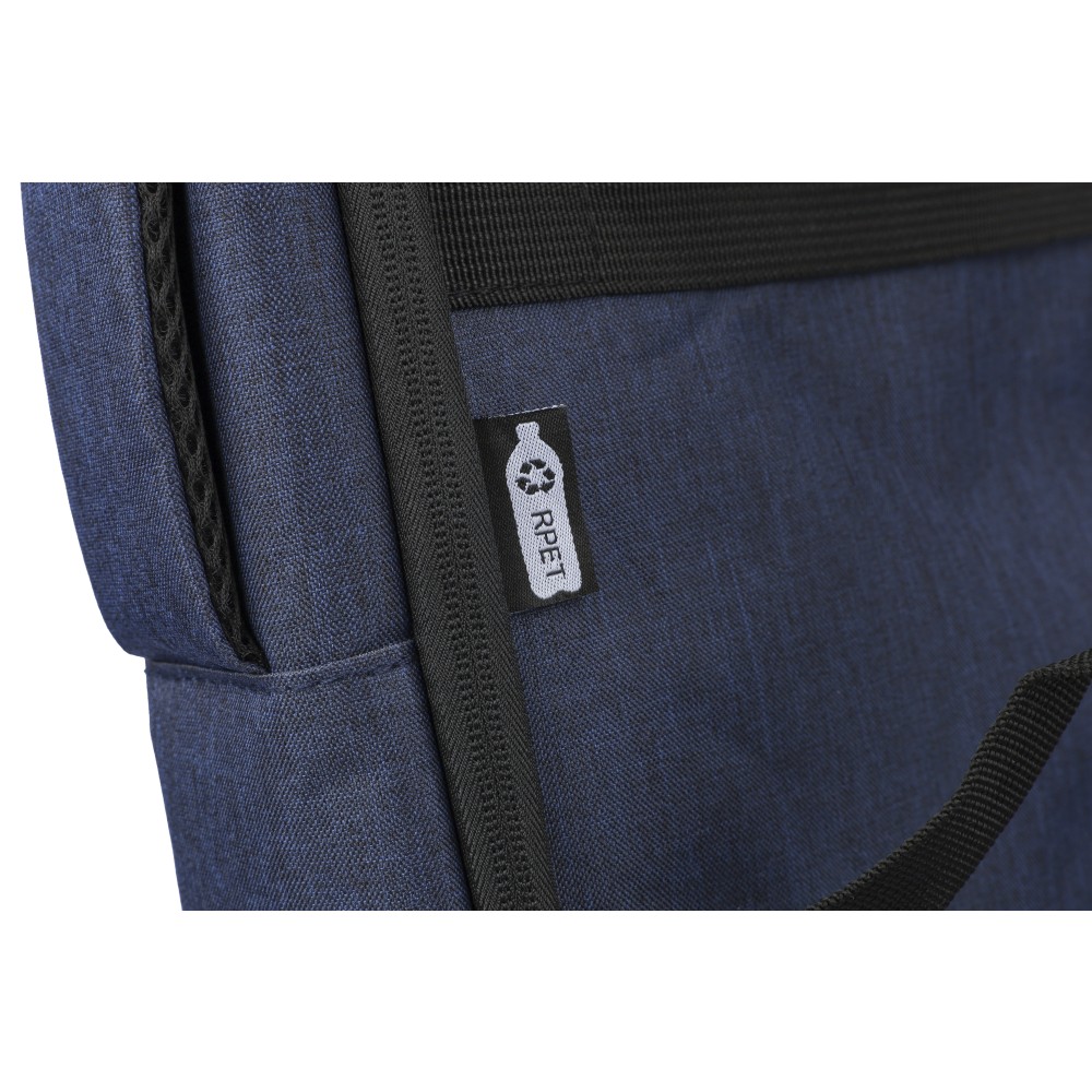 Laptophátizsák 300D rPET poliészter anyagból, 210D rPET béléssel. Egy nagy cipzáras rekesszel, számtalan belső zsebbel, tépőzáras laptoptartó zsebbel 15"-es laptop számára és 12 literes űrtartalommal. Megerősített, szellőző hátrésszel, állítható vállpánttal, oldalsó hordozófüllel és gurulóstáskára való felhelyezésre alkalmas pánttal. Teherbíró képesség: 10 kg.