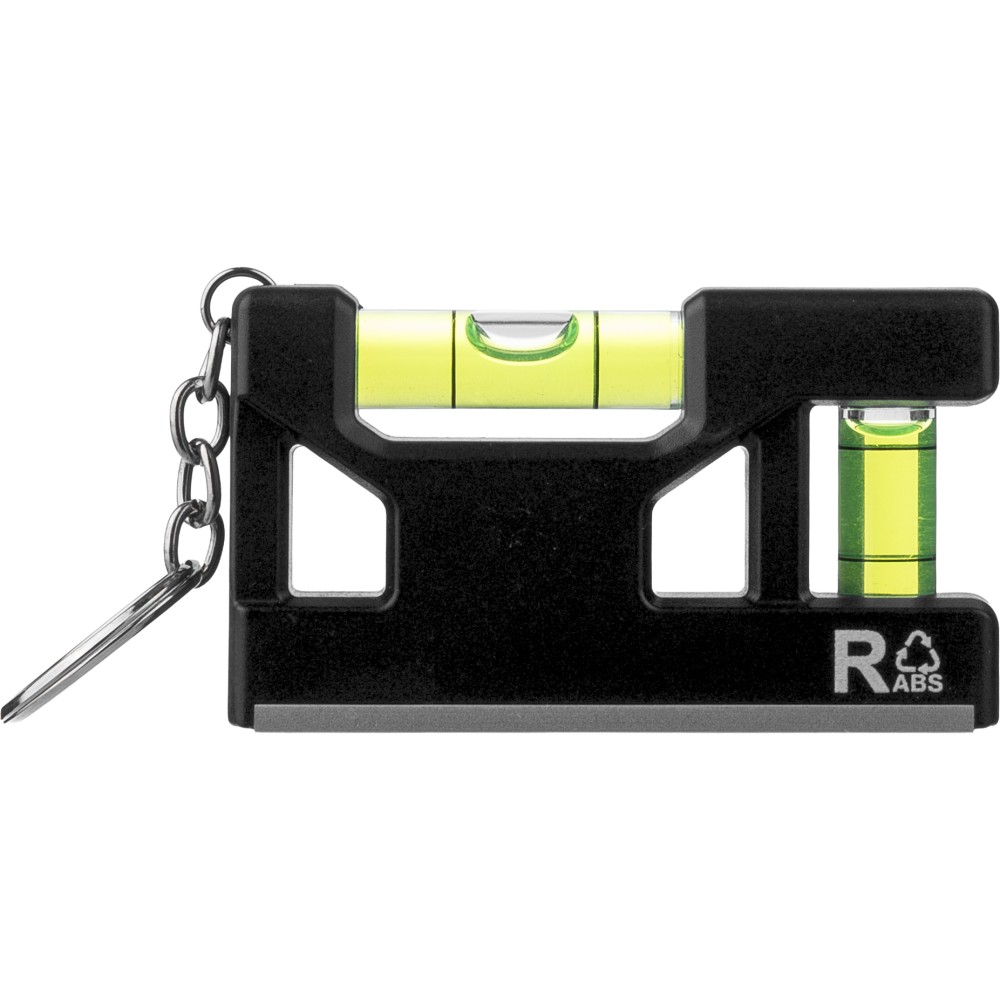 Kulcstartó vízmértékkel, újrahasznosított ABS, fekete
