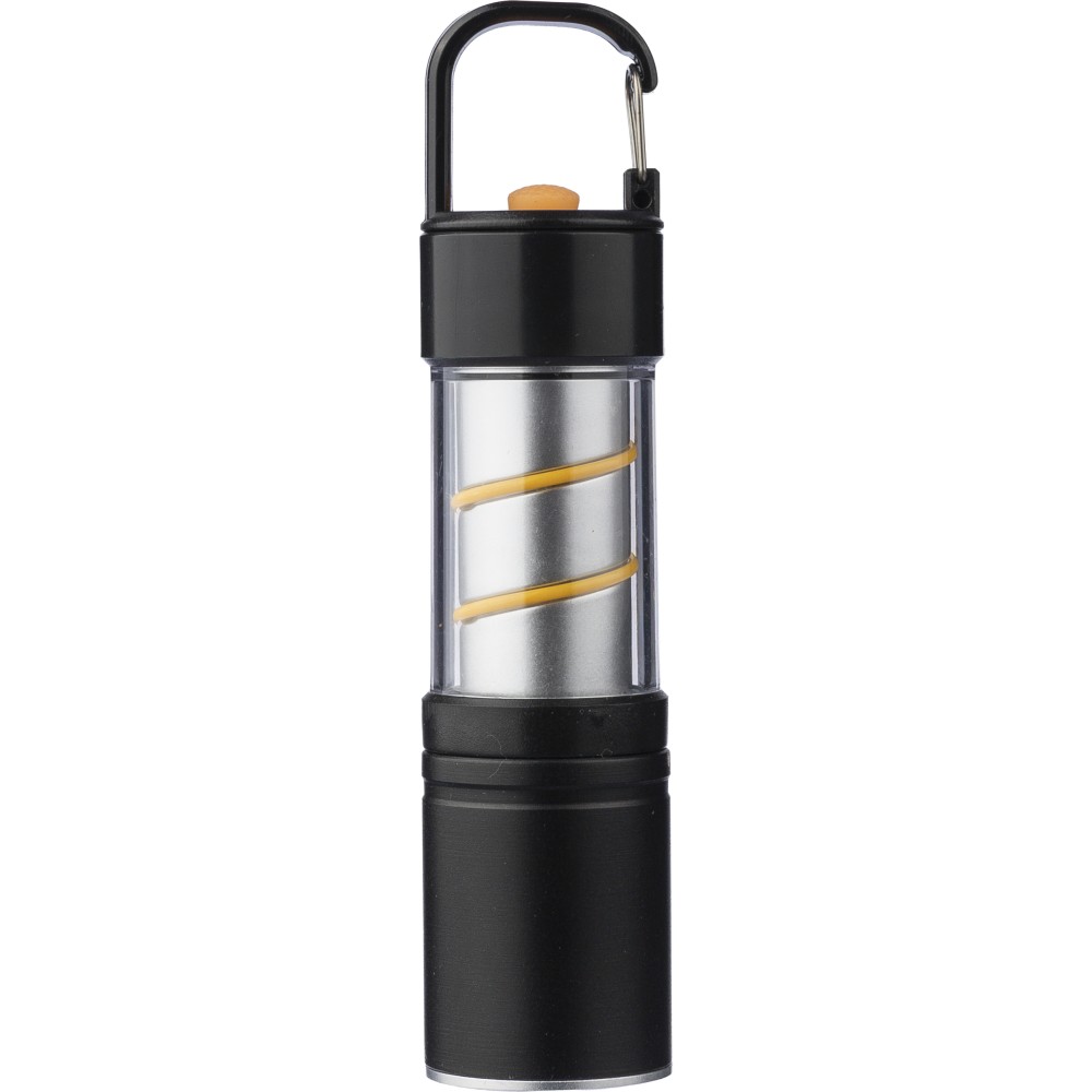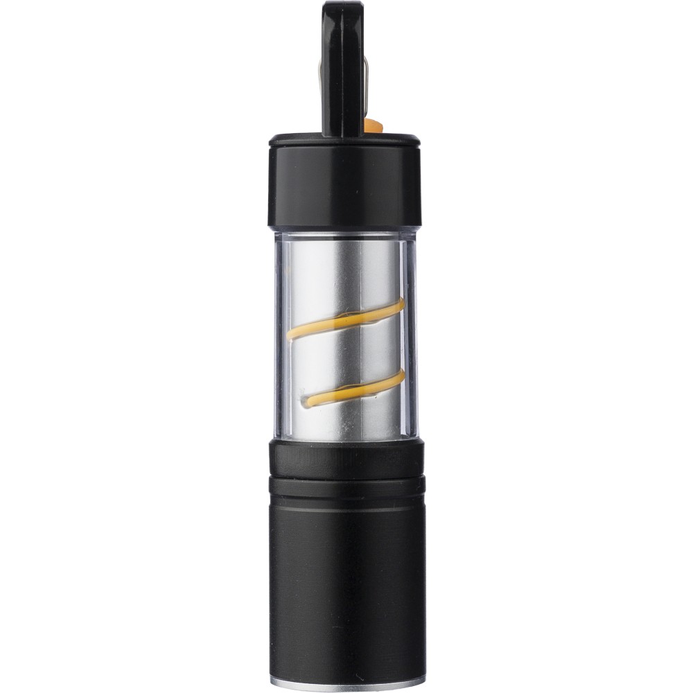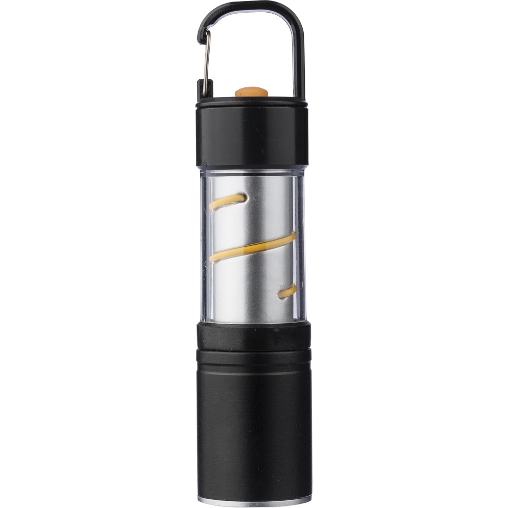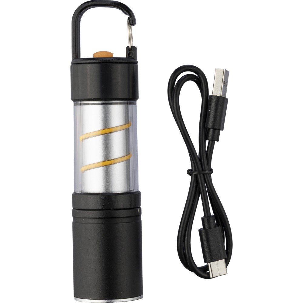 Alumínium és ötvözet COB zseblámpa ABS burkolattal, fém klipsszel és fekete karabinerrel. 3 világítási funkcióval, zoom móddal, nyomógombbal és mágneses talppal. 500 mAh-s lítium-ion akkumulátorral működik, C típusú töltéssel. 30 cm-es fekete kábellel. Egyenként csomagolva, barna kartondobozban.