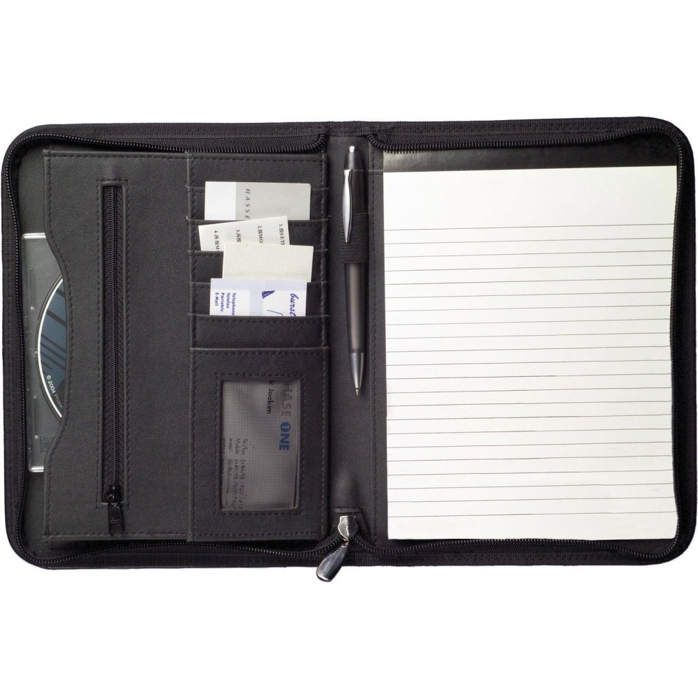 A5-ös cipzáras préselt bőr mappa, fekete