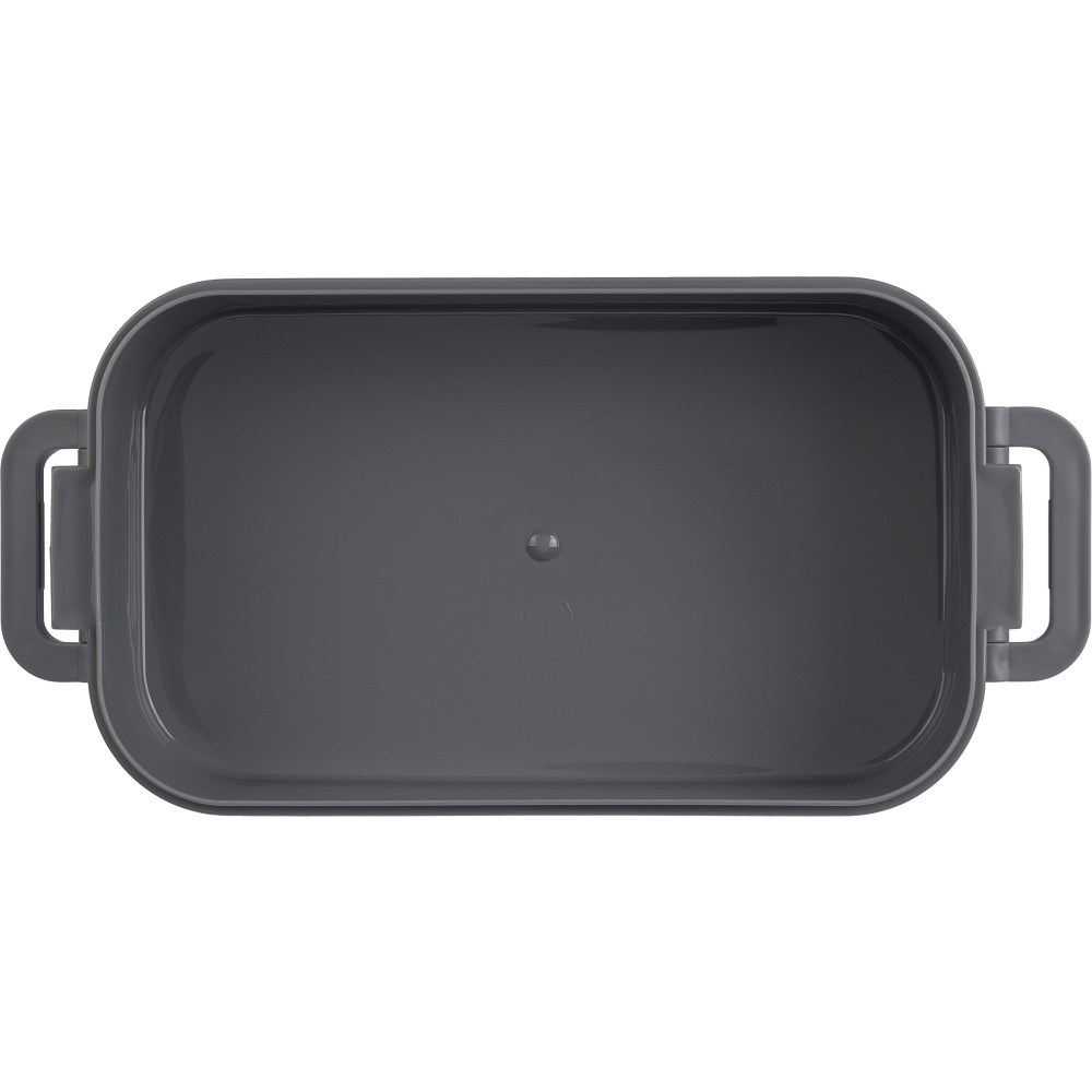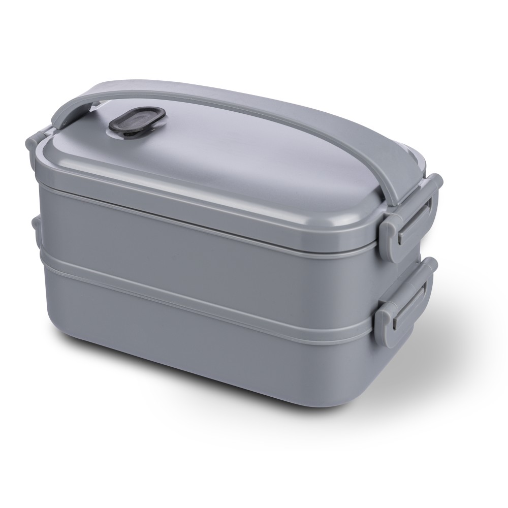 1600 ml-es PP ételtároló doboz 2 db, egyenként 800 ml-es résszel. Szilikon szeleppel a mikrohullámú sütőben történő melegítéshez, csatos záródással és szilikon hordozófüllel. Mosogatógépben tisztítható.
