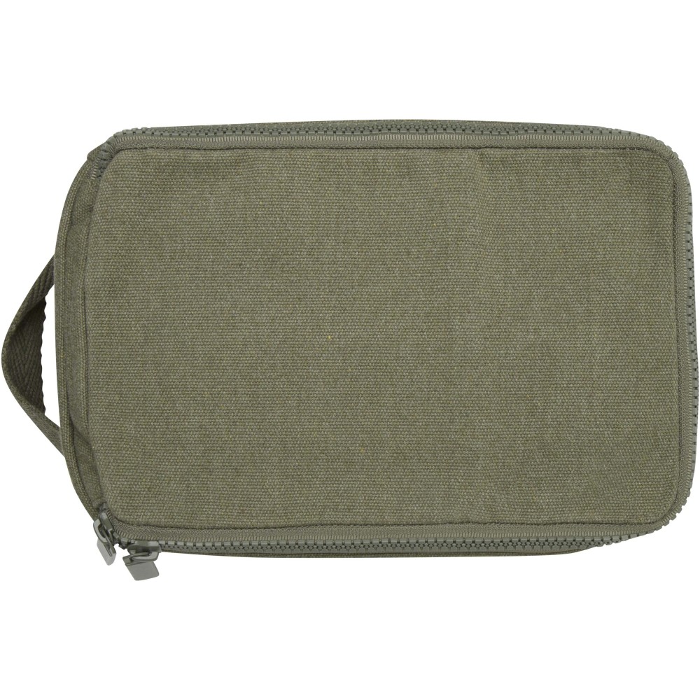 Piperetáska 500 g/m2 újrahasznosított pamutból és poliészterből, tágas fő rekesszel, biztonságos cipzáras záródással és több belső zsebbel, amely ideális piperecikkek tárolására. Sokoldalú kialakításának köszönhetően kisebb tárgyak - például zoknik vagy töltők - rendszerezésére is kiváló, így a csomagok rendezetten tarthatók. A táska Cyclo újrahasznosított szálakat tartalmaz, amelyek előválogatott hulladékból készülnek, és ennek megfelelően alakul a fonal színe is. Ezek a szálak nemcsak a primer nyersanyagok iránti igényt csökkentik, hanem elköteleződést is mutatnak a körforgásos szemlélet iránt, elősegítve a hulladékcsökkentést és a zárt rendszerű gyártást. Minden táskához tartozik egy Aware nyomkövető is, amelynek QR-kódja révén nyomon követhető a termék eredete és útja, ezáltal fokozva az ellátási lánc átláthatóságát, és erősebb kapcsolatot teremtve a felhasználó és a termék gyártási folyamata között.