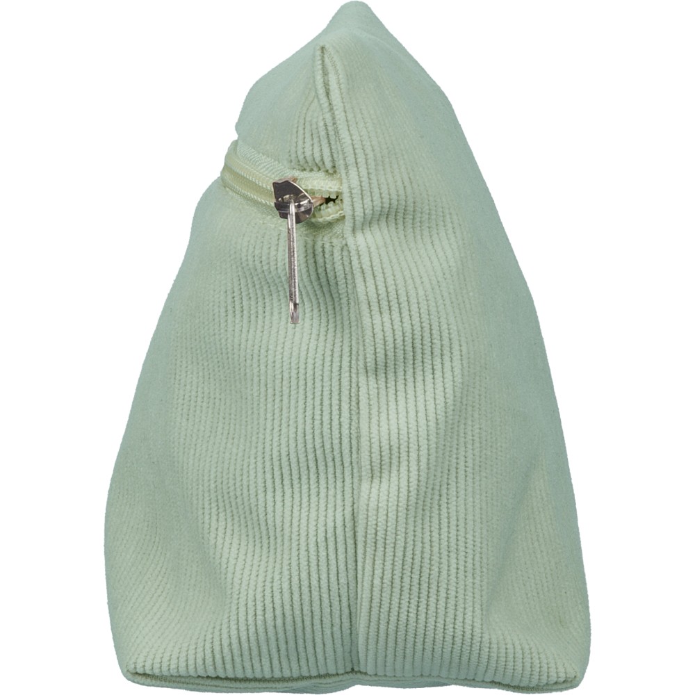 Kordbársony anyagból készült cipzáras kozmetikai táska egy fő rekesszel és biztonságos cipzáras zárással.