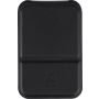 Üvegtükör összehajtható, újrahasznosított PU borítással, amely kinyitva álló helyzetben használható. A borításon dombornyomott, újrahasznosított alapanyagra utaló logó található. Papírtasakba csomagolva.