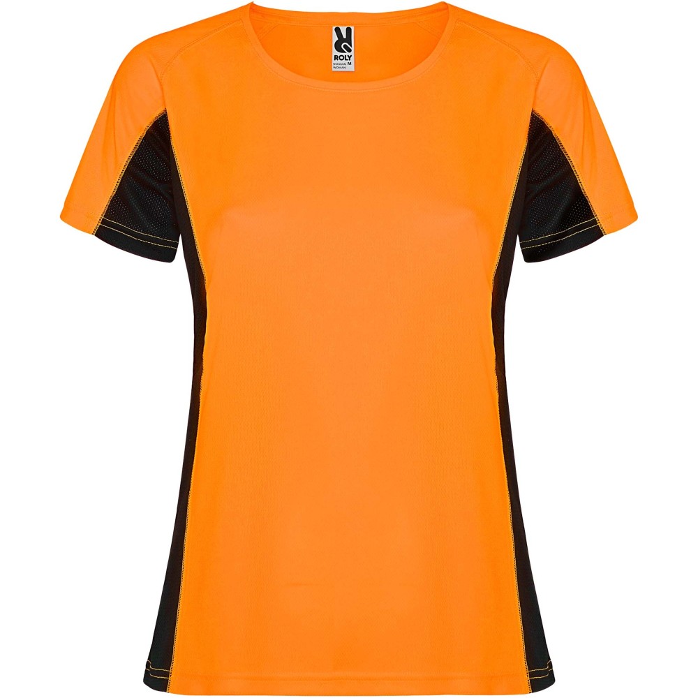 Roly Shanghai rövid ujjú női sportpóló, Fluor Orange, Black