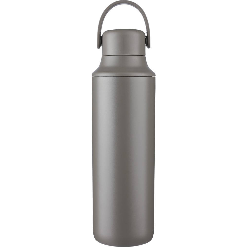 Duplafalú rozsdamentes acél kulacs (500 ml), belső anyaga 304-es rozsdamentes acél, külső része pedig 201-es rozsdamentes acél. Két tetővel szállítjuk: egy hordozófüles PP tetővel és egy átlátszó PS tetővel, amely a mellékelt rozsdamentes acél szívószállal, szilikon véggel és tartóval használható. Egyenként csomagolva, barna kartondobozban.