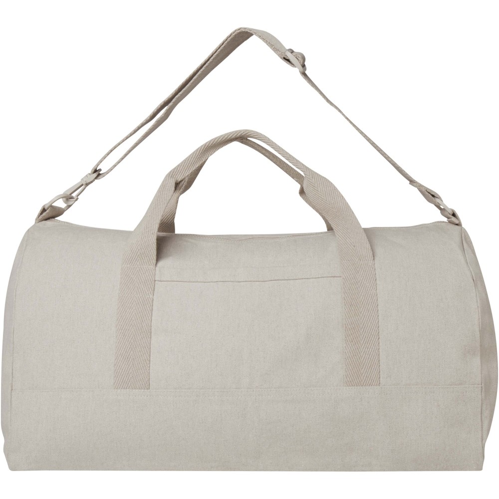 A Porter sporttáska 500 g/m2 újrahasznosított pamutból és poliészterből készült, tágas fő rekesszel a nagyobb tárgyak optimális tárolására, valamint egy kisebb elülső zsebbel, amely ideális például útlevél vagy mobiltelefon elhelyezésére. A táska kézben vihető a két rövid fogantyú segítségével, vagy a levehető és állítható vállpánttal, amely maximális kényelmet biztosít viselés közben. A sporttáska Cyclo újrahasznosított szálakat tartalmaz, amelyek előválogatott hulladékból készülnek - ennek megfelelően alakul a fonal természetes színe is. Ezek a szálak nemcsak a primer nyersanyagok iránti igényt csökkentik, hanem hozzájárulnak a körforgásos gazdaság megvalósításához, elősegítve a hulladék csökkentését és a zárt rendszerű gyártást. Minden táska Aware nyomkövetővel van ellátva, amely QR-kód segítségével lehetővé teszi a termék eredetének és útjának nyomon követését. Ez az innovatív megoldás növeli az ellátási lánc átláthatóságát, és erősebb kapcsolatot teremt a vásárló és a gyártási fol